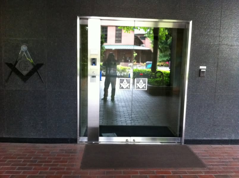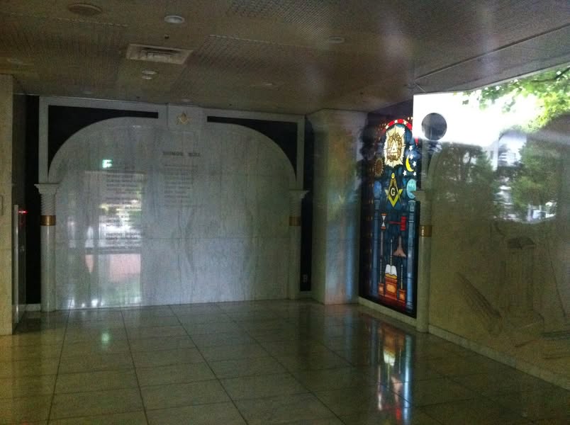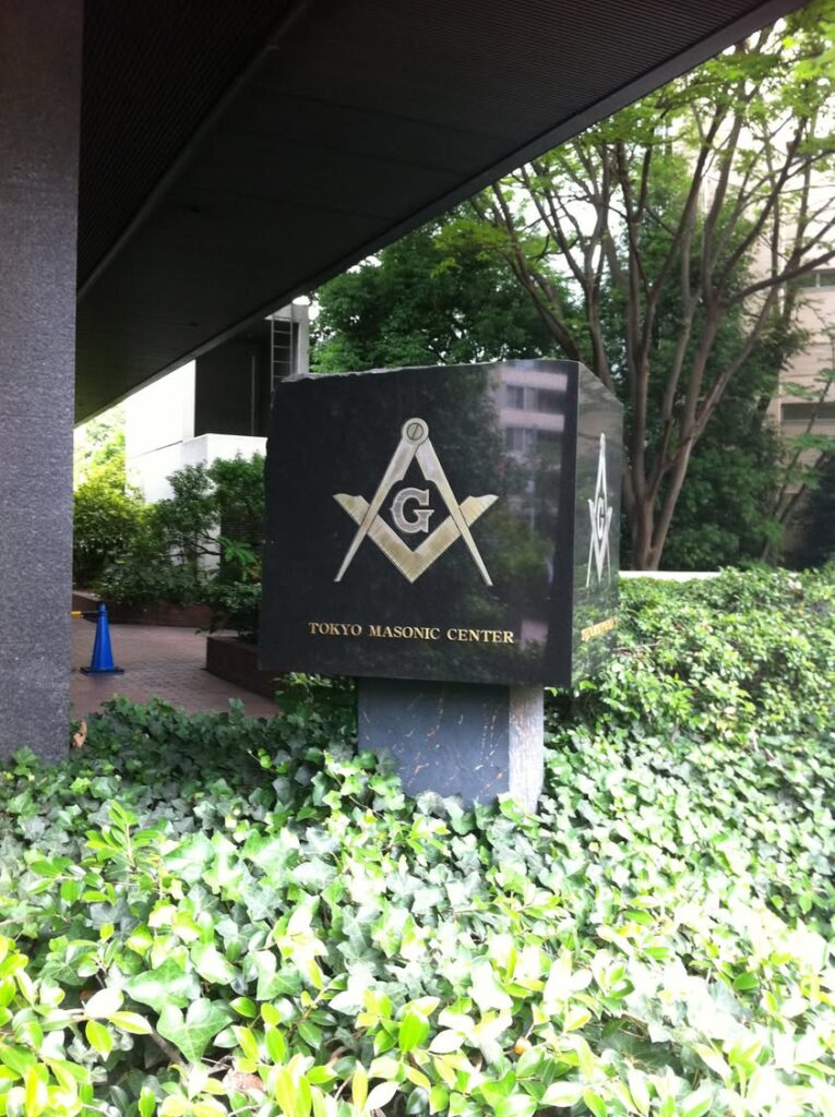 フリーメーソン日本ロッジ。敷地内は、森ビルの管理で、メソニックMT38、39などのテナントビルも並ぶ。