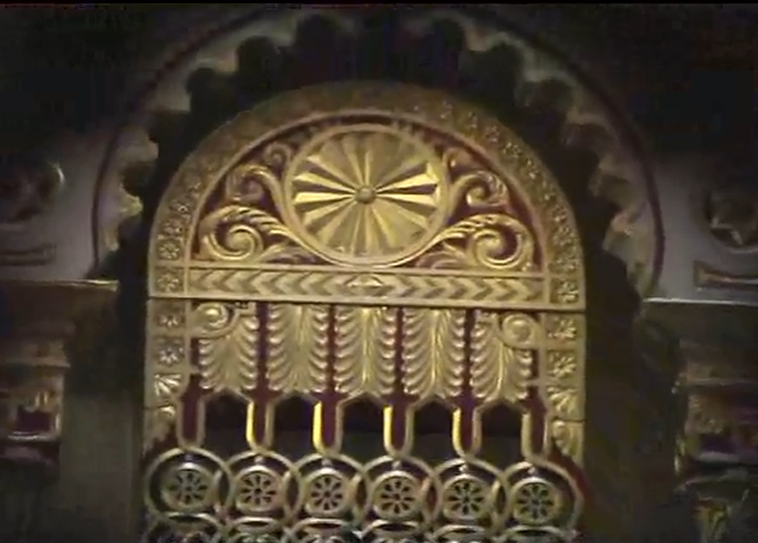 その時、その祭壇内の写真を撮らなかった。祭壇の写真を撮影することは一般的に禁止されているので撮影は控えた。しかし、その後撮影しなかったことを後悔した。ネットでいくら探しても全く見つからなかったからである。このシナゴーグの祭壇の写真はあったが、この紋章がはっきり写っているものがない。