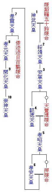 二代綏靖天皇から八代開花天皇まで古事記、日本書紀に事績の記載のない天皇のことを言う。昭和期に津田左右吉が、欠史十三代を唱え、彼の主張の影響によると思われるが戦後になりGHQの強制的な指導の下、教科書から削除された。