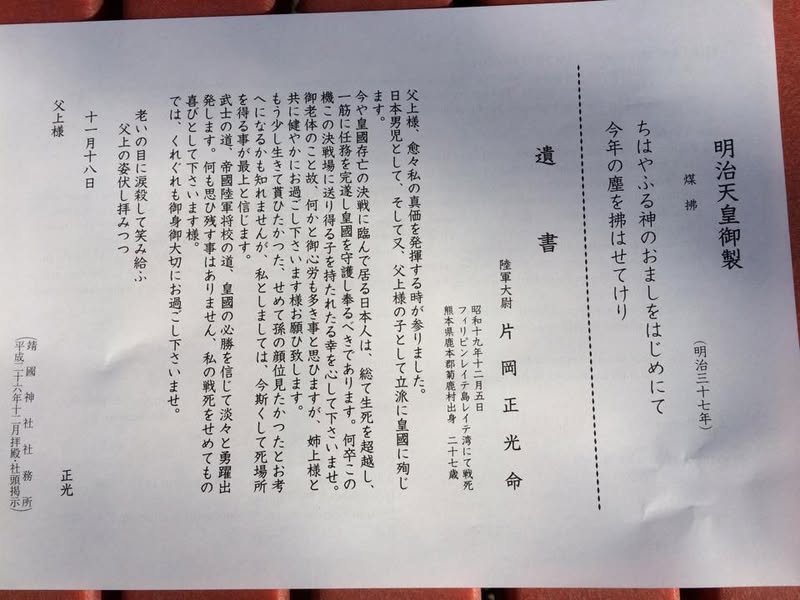 Share Facebook Twitter LinkedIn Pinterest Email 幕末期、ここに神道無念流道場があり、桂小五郎、高杉晋作、伊藤博文らが門下生となった。 本日は久々に靖國神社を参拝。父の戦友の皆様、最近知り合いになり、父と同じ船に乗船し、共に大砲の部署におられたという方の御祖父や戦友の皆様のことを想う。 最近はあの時代の気風を嘲笑ったり、子供じみた否定の雰囲気があるが、あの時代本気で鬼となり散った人々のことを理解しようとしないようでは、本人も、その子も孫の代まで碌な死に方はできないものと思われた。 101528917533947311015289175342973110152891753454731