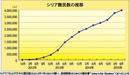 シリア難民は国内に800万人、トルコに190万、レバノンに70万、そしてヨルダンに110万。すでに欧州へ渡ったシリア系難民は63万人ともいわれる。