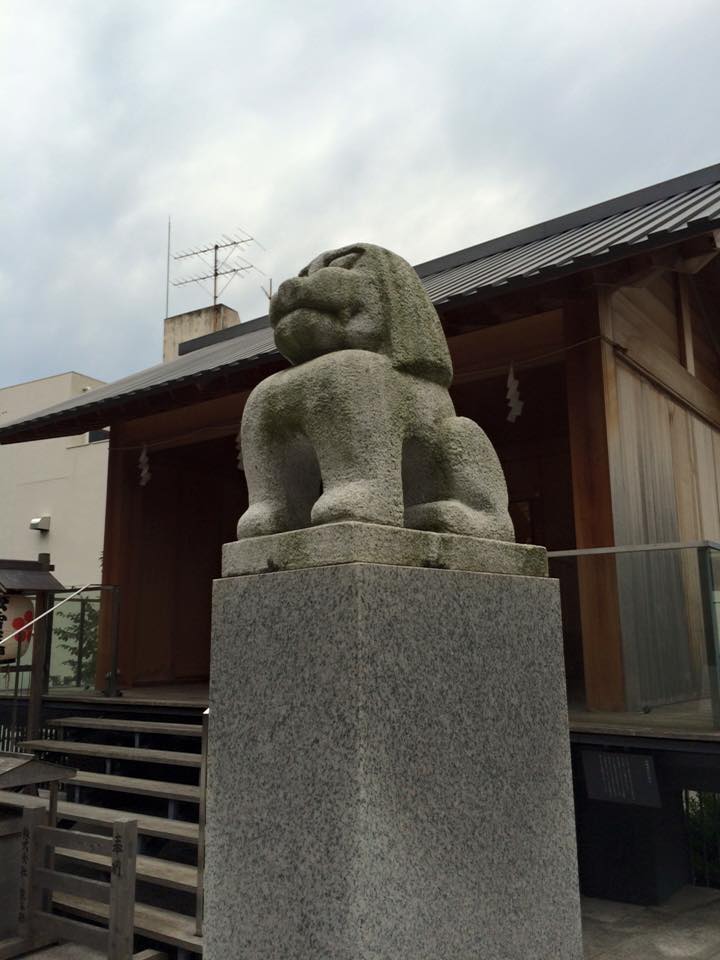赤城神社の狛犬がスフィンクスのようで可愛い。