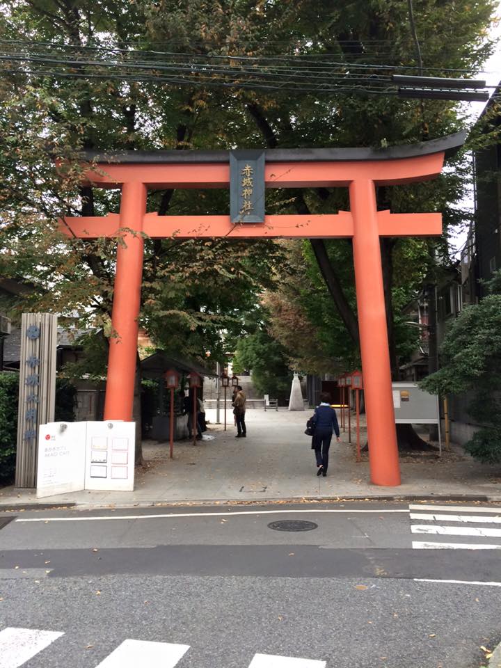 神楽坂を登りきり、さらに通りを数分進むと右手に鳥居がある。
