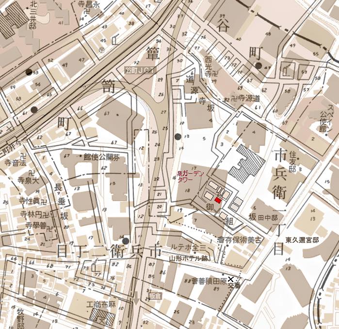 戦前、永井荷風が居住した「偏奇館」という建物。(写真2枚目、位置は写真3枚目中の赤四角点)