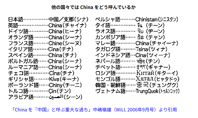 いままで何となく中国と呼んできたが、従って、これからはできるだけ支那(シナ)と呼ぶことにしようと思う。