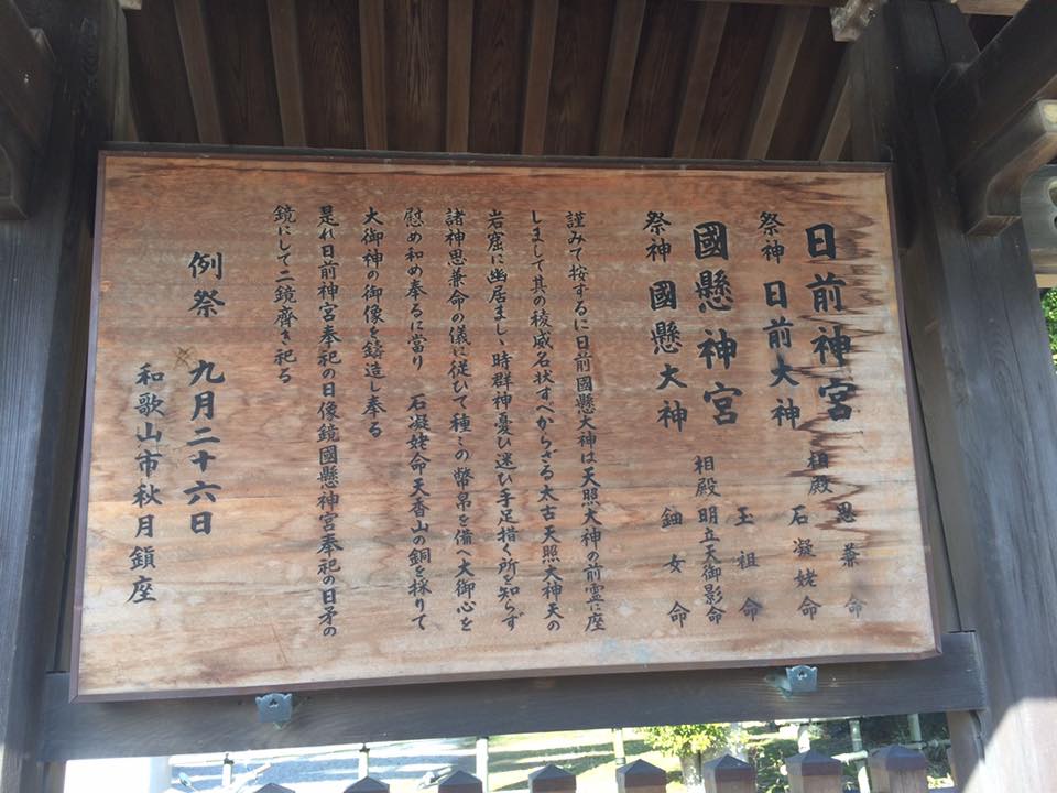 祭神は、日前大神、國懸大神という。伊勢神宮の御神体である八咫鏡に先立ち、作成された日像鏡、日矛鏡がその御神体である。