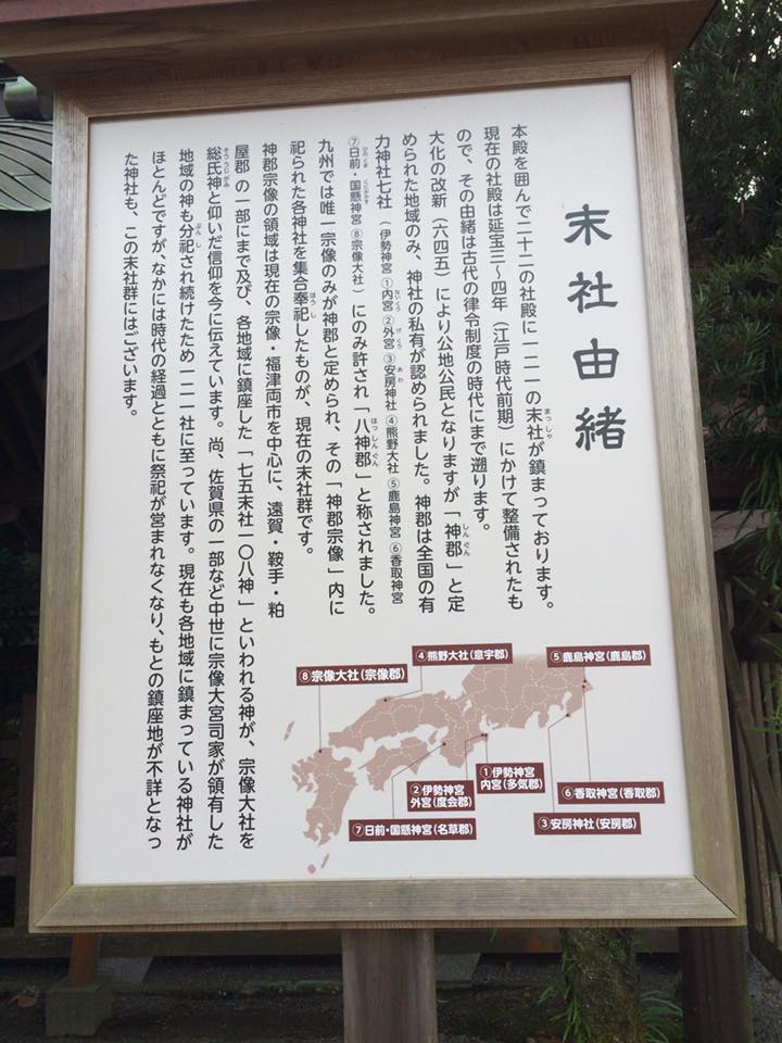 最近宗像大社へ行った際に発見した、古代有力七社は、伊勢、宗像、熊野(出雲)、日前・國懸、安房、鹿嶋、香取であった。