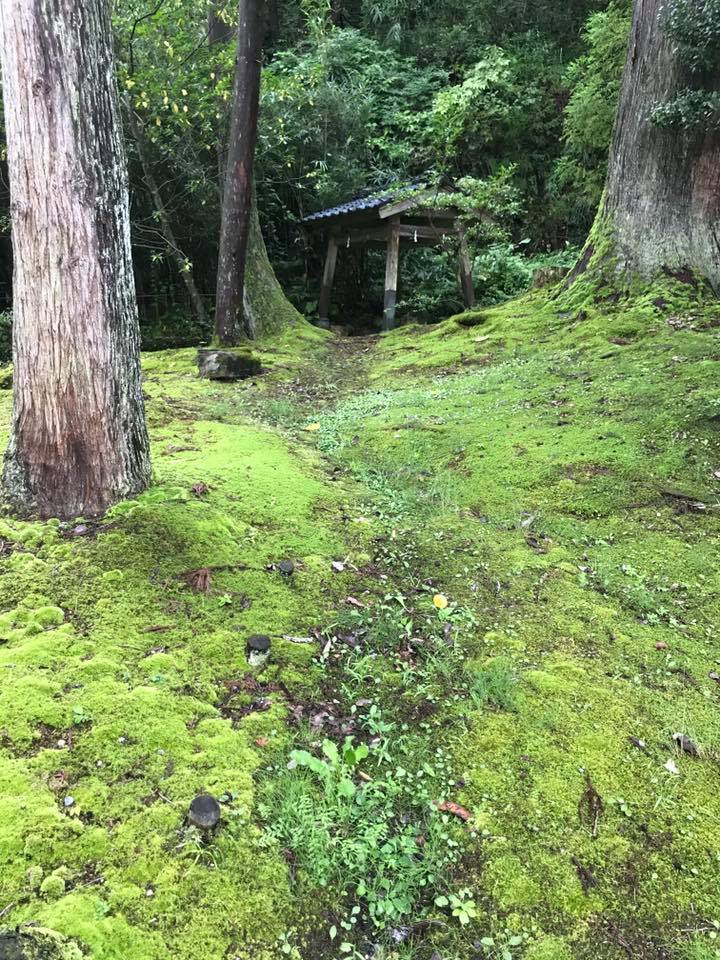 境内の大杉の前に、幅約7.3m、奥行約5.4m、上下二段の祭壇を設ける。天上の神がここに降臨する。