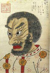 (写真 : 猿田彦、ペリーの人相書、西郷隆盛像)
