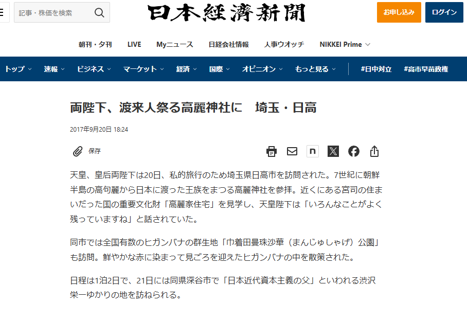 これ以外にも埼玉県は朝鮮半島に極めて縁の深い地域である。