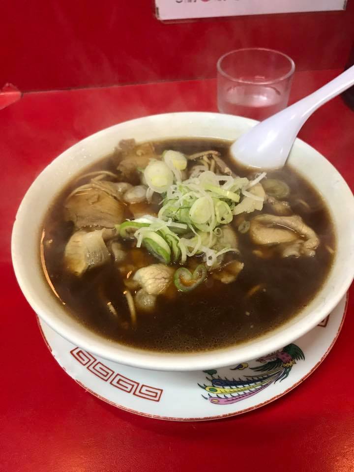 Share Facebook Twitter LinkedIn Pinterest Email 京都発祥ということだが、本店が秋田で東北にしかないラーメン店。 「中華そば(並)」を頼んだら、黒いスープに肉だけがどっさり。これが東北ラーメンのスタンダードなのか京都風なのか。 しかし少なくとも味は関西風でない。縄文風? しかし、かなり美味い。