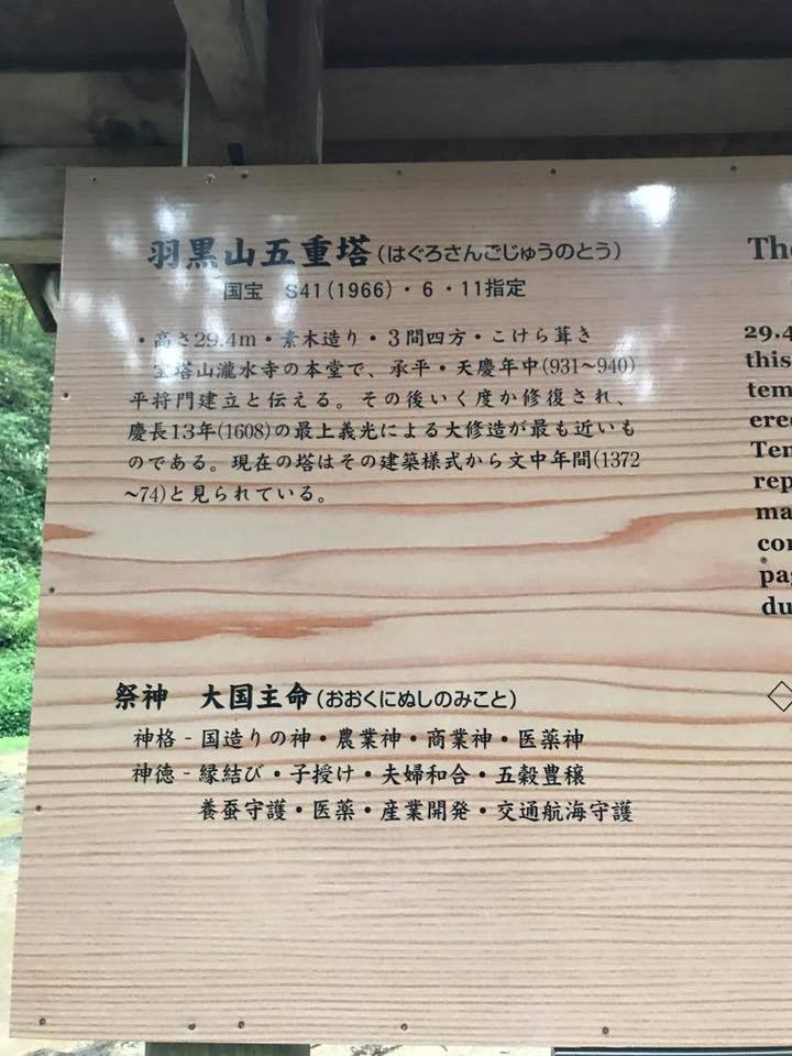 出羽三山神社入口の随神門付近にある国宝の五重塔。