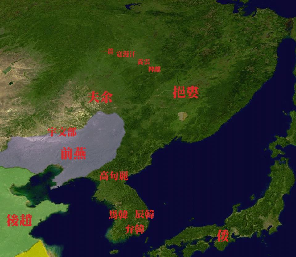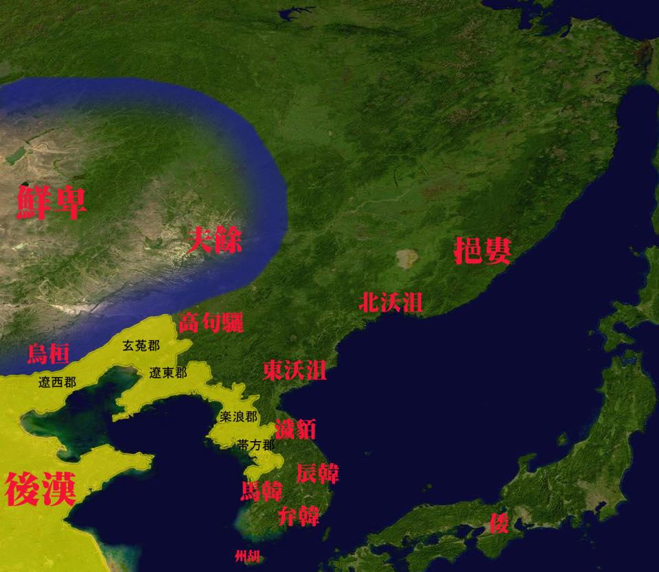 紀元前1世紀の図を見れば明らかなように、この時期の古代において朝鮮半島にはオリジナルの国家はまだ存在せず、半島の大半は漢帝国の領域であり、日本の出雲族系の居住地域があったのであろうと思われる。