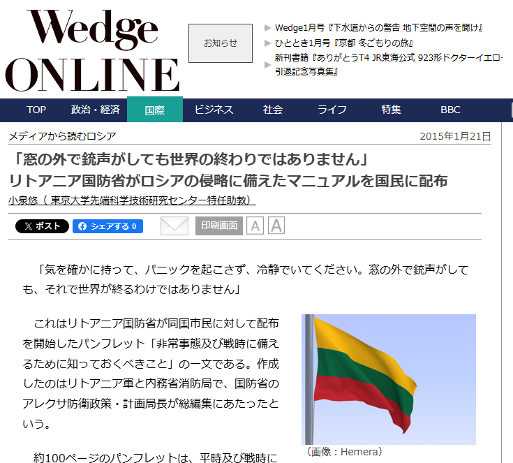 「窓の外で銃声がしても世界の終わりではありません」 リトアニア国防省がロシアの侵略に備えたマニュアルを国民に配布 (Wedge Online)