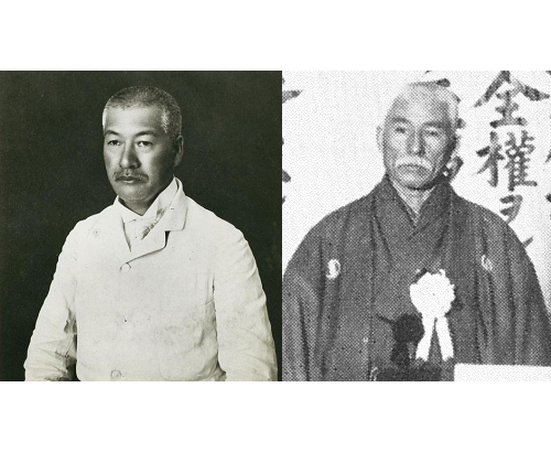 写真:徳富蘇峰㊧(出典:https://www.pu-kumamoto.ac.jp/users_site/ijin/tokutomisohou.html)と内田良平