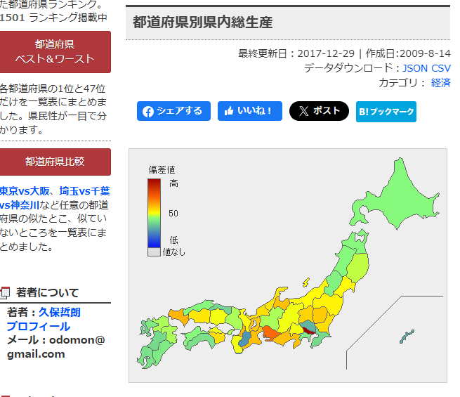 都道府県別統計とランキングで見る県民性より都道府県別県内総生産