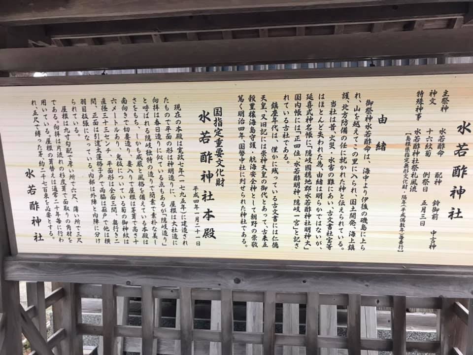 Share Facebook Twitter LinkedIn Pinterest Email 隠岐国一ノ宮 水若酢神社。隠岐には一ノ宮と言われる神社が他にも二社ほどある。現在ではこの水若酢神社が一ノ宮ということになっている。 玉若酢神社が後醍醐天皇行在所跡の至近にあるが、玉若酢の方が風格あるように思われる。 しかしこの神社も良い神社である。当神社の比較的近くにある伊勢命神社は、現地の人々から内宮と言われ、水若酢神社を外宮と呼ぶならわしがあるようだ。 水若酢、玉若酢両社共、隠岐造という独特の社殿。 古代の匂いのする勇壮な風格を醸す。 隠岐 水若酢神社 隠岐 水若酢神社隠岐 水若酢神社隠岐 水若酢神社隠岐 水若酢神社隠岐 水若酢神社 隠岐 伊勢命神社 隠岐 伊勢命神社隠岐 伊勢命神社隠岐 伊勢命神社