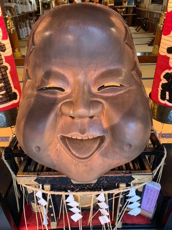 賽銭箱の上に大きな福面が据えられており、目鼻口の穴からお賽銭を入れるようになっている。