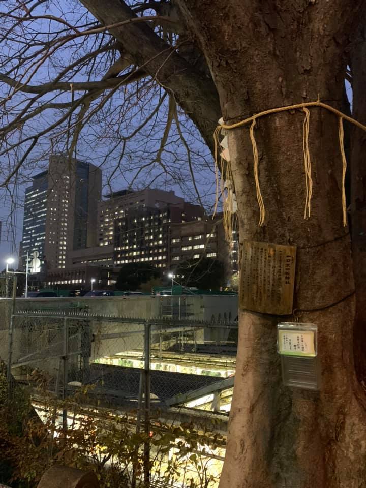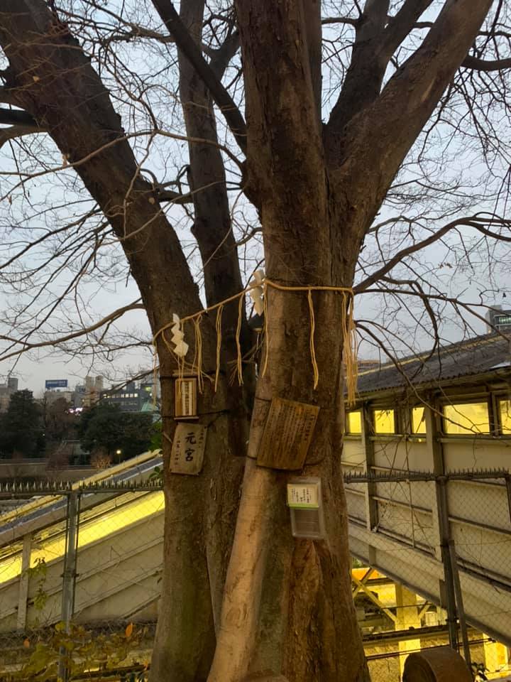 御茶ノ水駅前、聖橋の際にある木にお札が安置されているのを発見した。