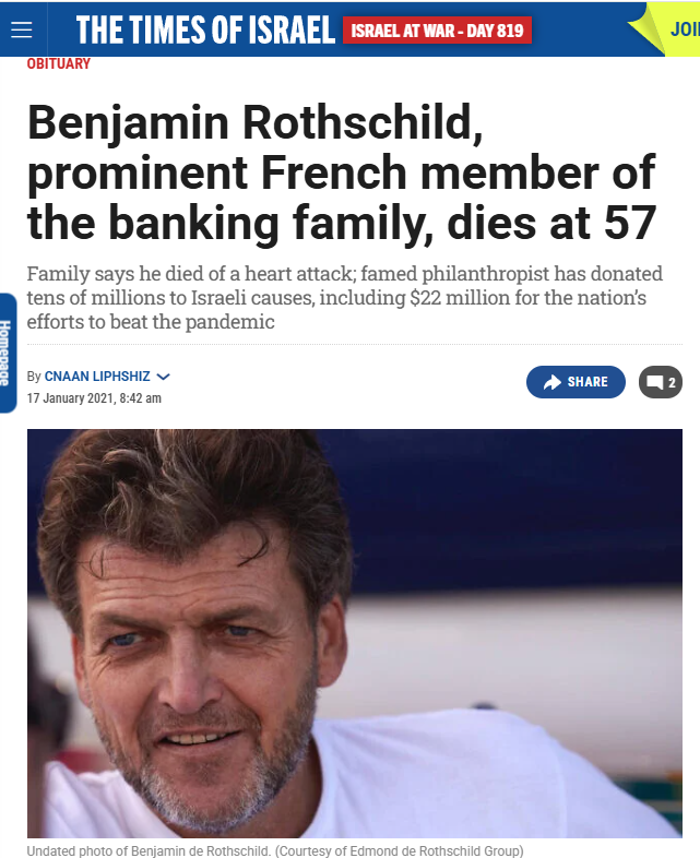 Benjamin Rothschild, prominent French member of the banking family, dies at 57 (The Times of Israel)