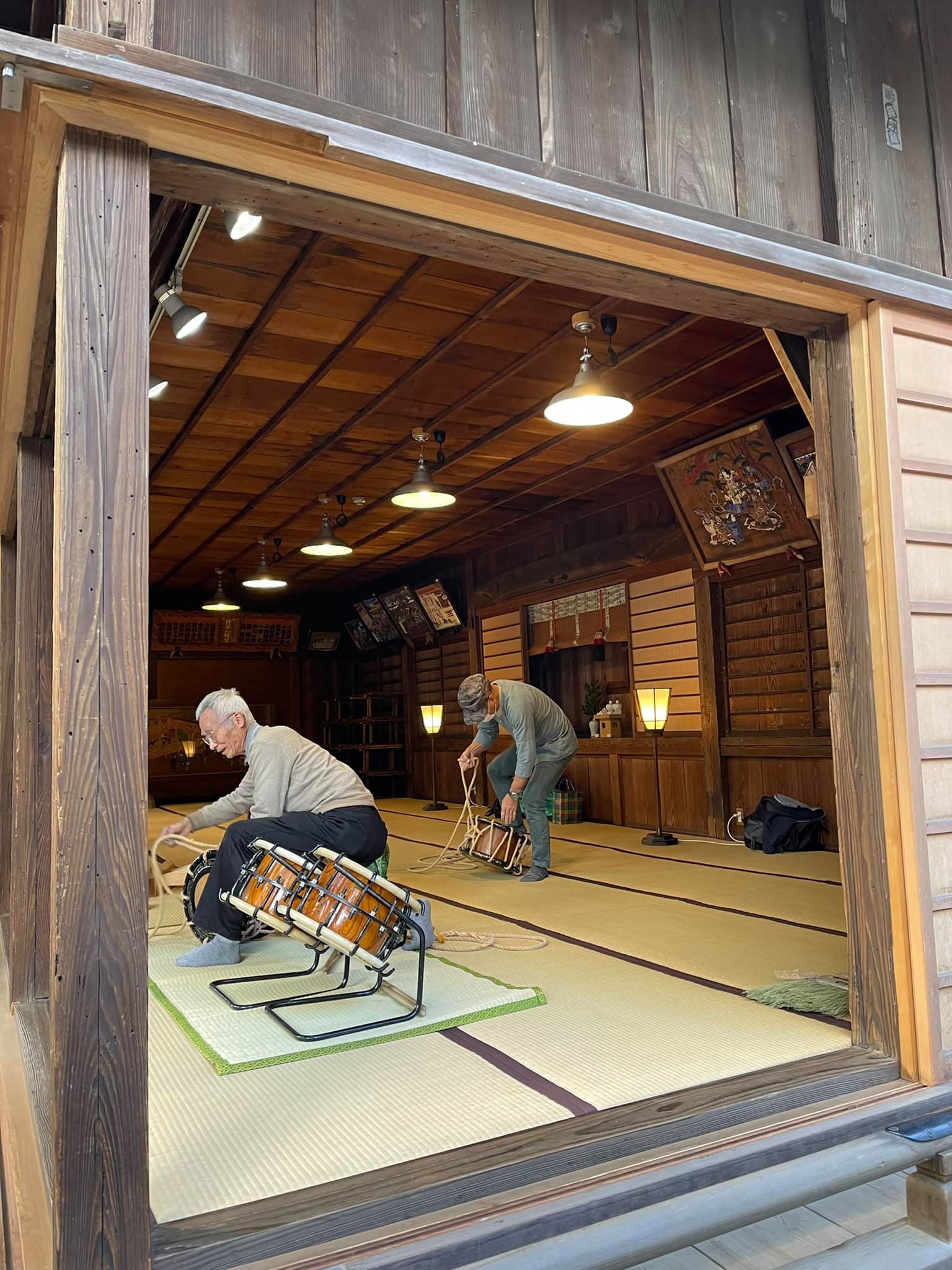 朝早かったが七五三のお参りの子供を連れた家族でなかなかの賑わい。お囃子の稽古も行われるよう