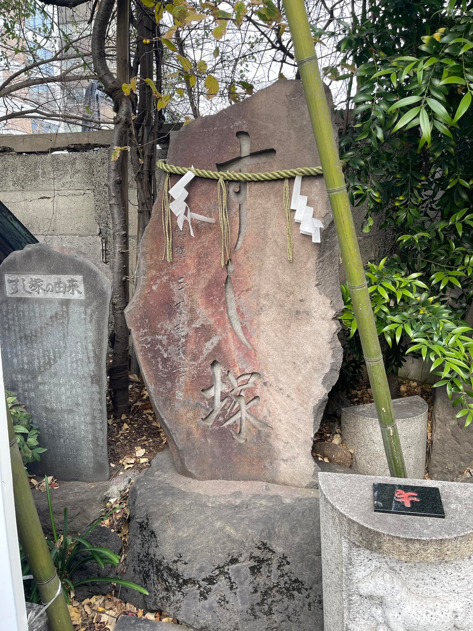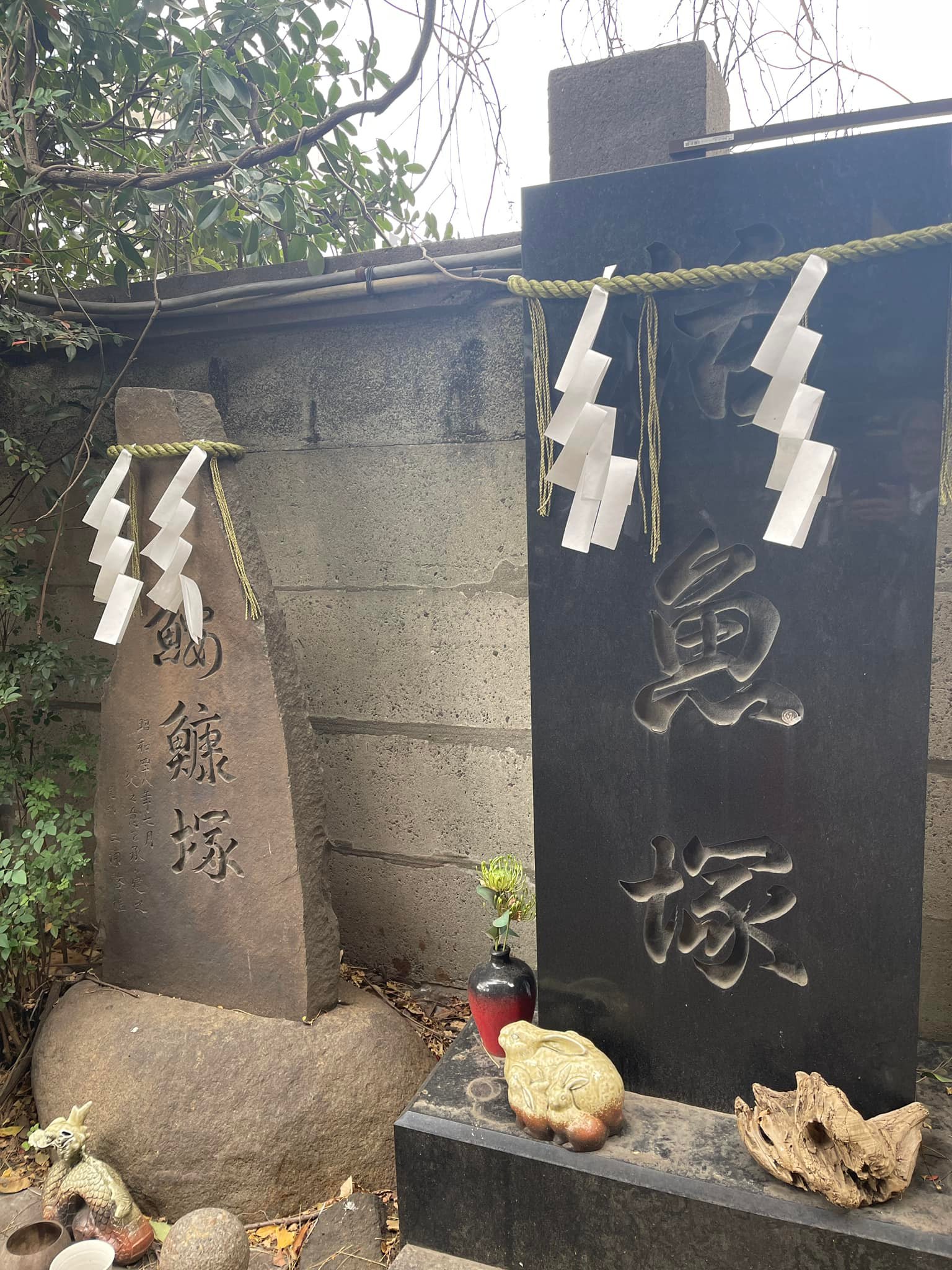 当神社は寿司職人、鮮魚商、天ぷら職人などの聖地でもあり、境内には「すし塚」「活魚塚」「海老塚」「玉子塚」「鮟鱇塚」などがある。