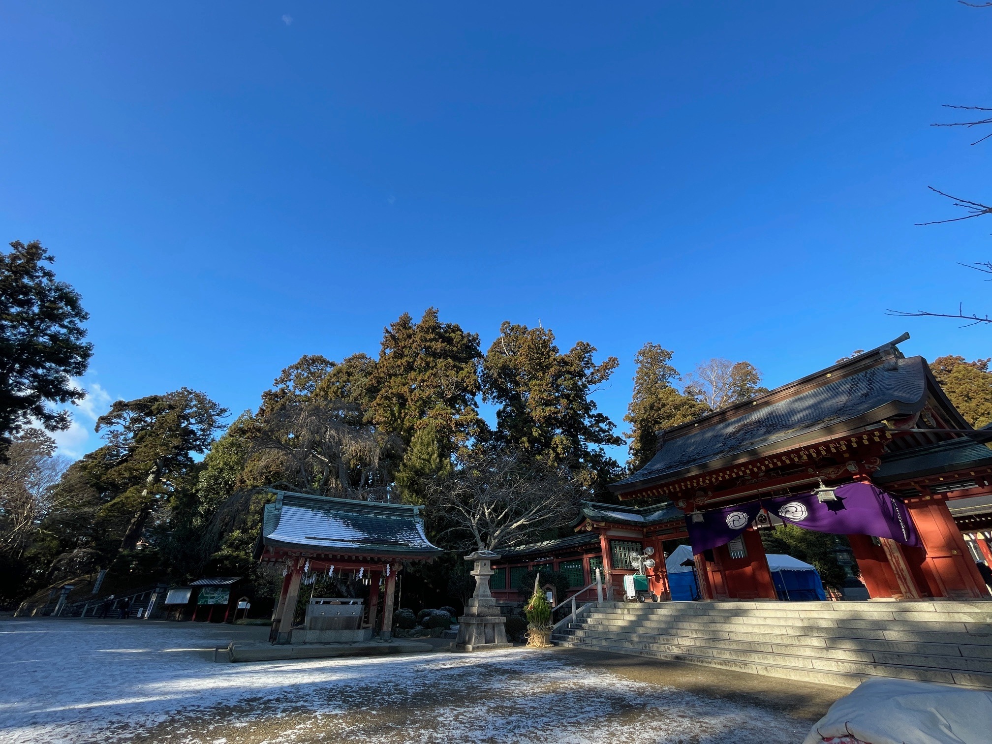 鳥居を過ぎて正面の階段を見上げる景色は圧巻で諸国神社の中でも屈指の社の一つであることが分かる。正面の本殿内の左宮(武甕槌神)、右宮に(経津主神)が祀られ、主祭神の鹽土老翁神(しおつちおぢのかみ)は本殿右手の別宮に祀られるという変わった形。