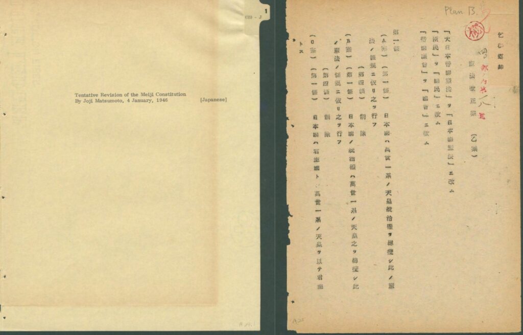 画像は、俗に松本試案と言われている日本側の改正案B案の冒頭部。A案と比較してみても明らかだが、B案の方が日本側の中心的な案だっただろう。